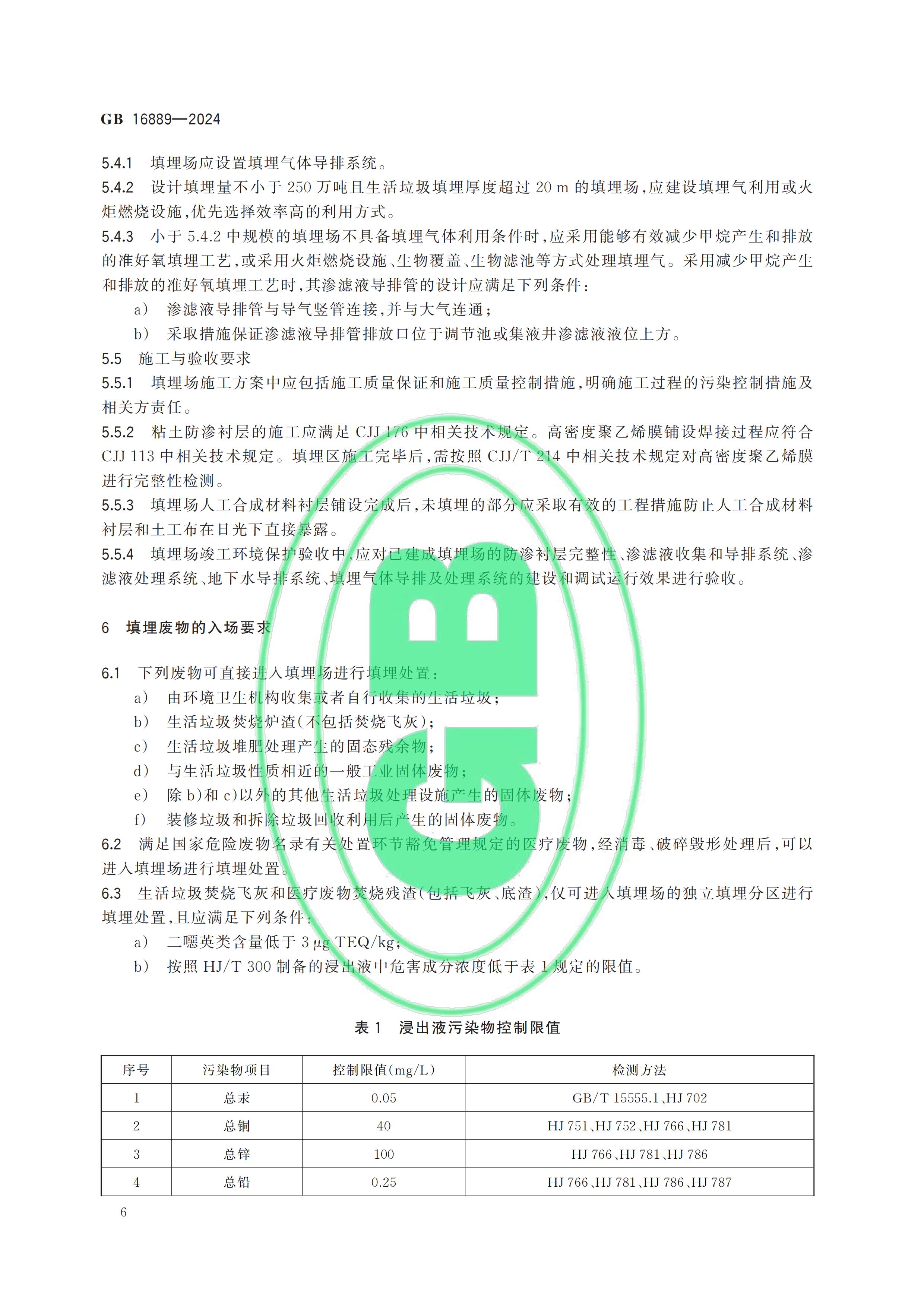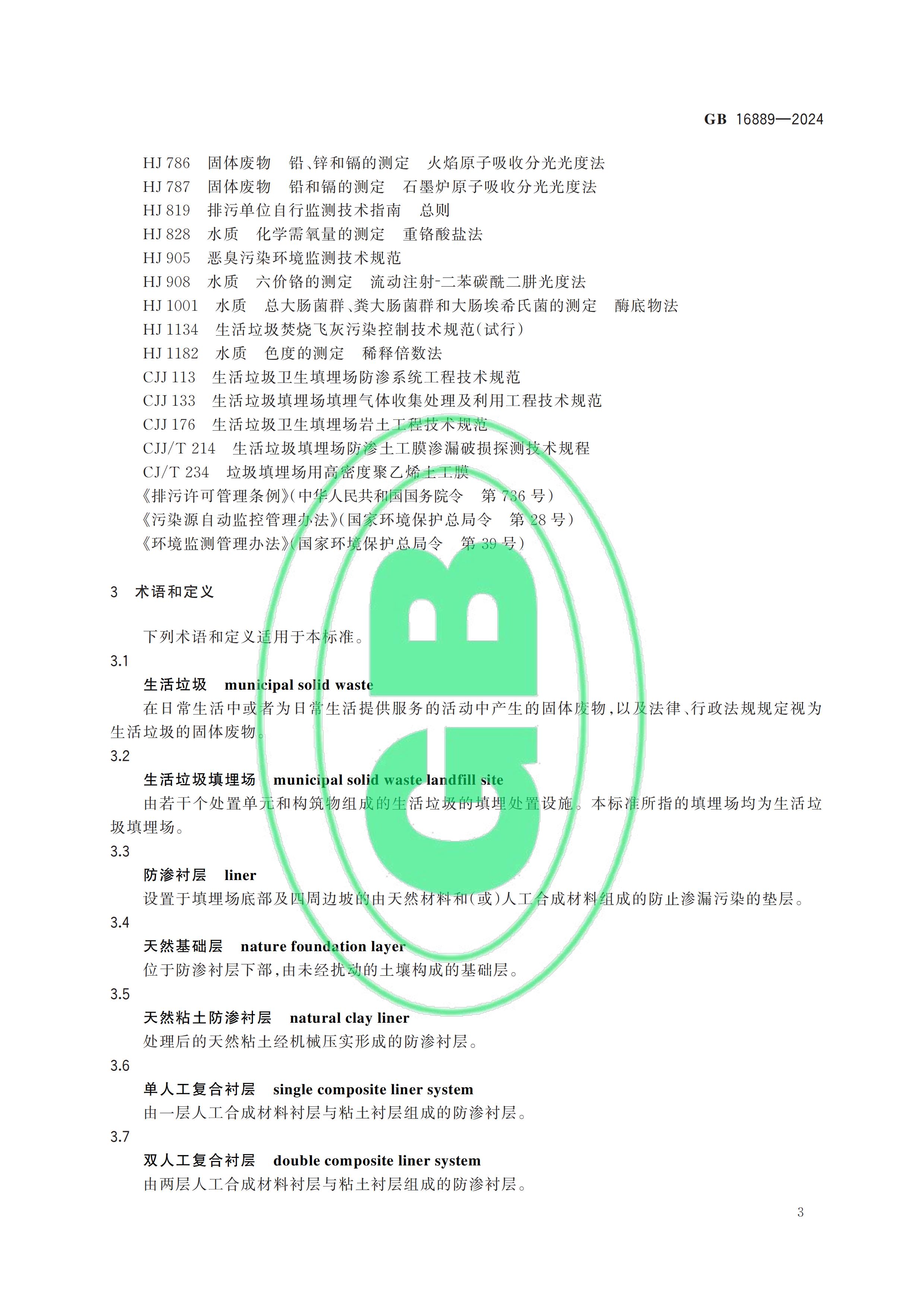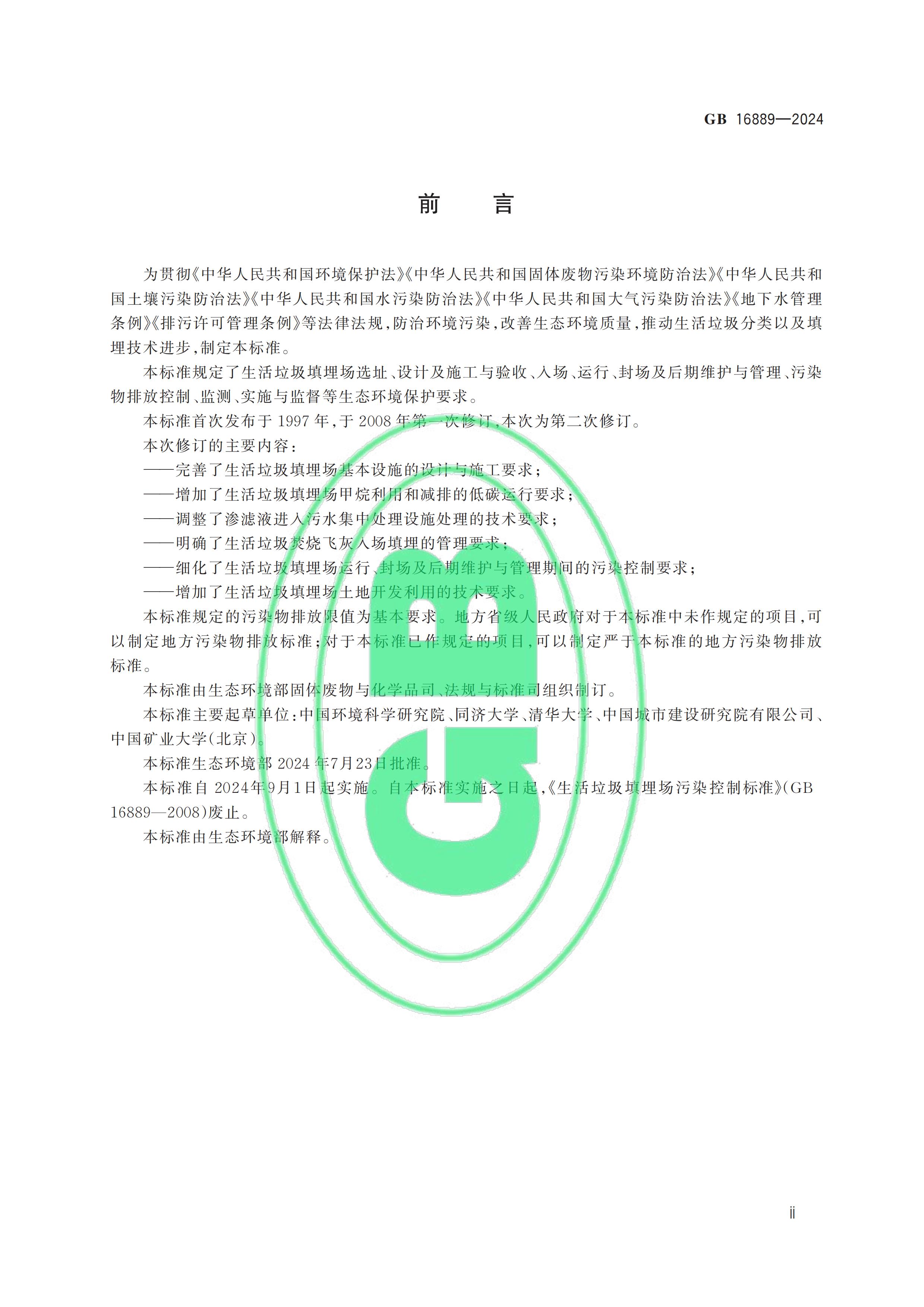 從“全國標(biāo)準(zhǔn)信息公共服務(wù)平臺(tái)”獲悉,國家標(biāo)準(zhǔn)《生活垃圾填埋場污染控制標(biāo)準(zhǔn)》(GB 16889-2024)已于2024年7月24日正式發(fā)布,新標(biāo)準(zhǔn)將替代原先的GB 16889-2008,于2024年9月1日起正式實(shí)施。以下是GB 16889-2024標(biāo)準(zhǔn)全文: