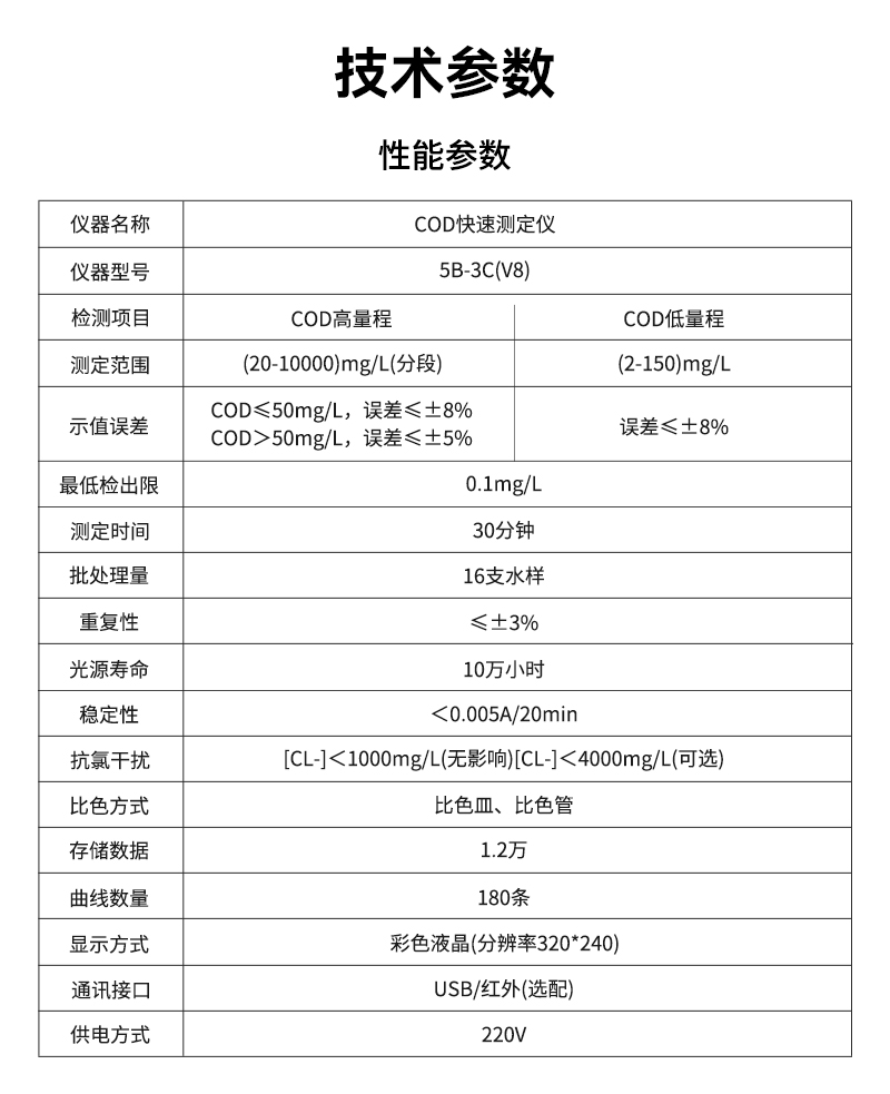 1、快速、準確測定地表水、中水、城市污水及工業廢水中的(COD);