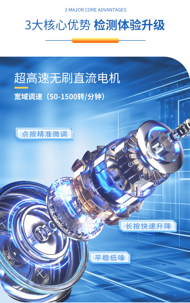 1、強(qiáng)勁動(dòng)力,無極調(diào)速:50-1500轉(zhuǎn)/分鐘寬幅調(diào)速,點(diǎn)按精準(zhǔn)調(diào)節(jié),長(zhǎng)按快速增減,操作更高效;